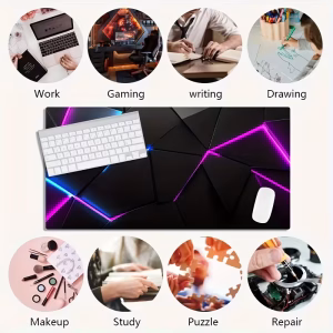 • Large Gaming Mouse Pad with Vibrant Geometric Design, Non-Slip Washable Rubber Base, Durable Desk Mat for Office & Gaming Setup