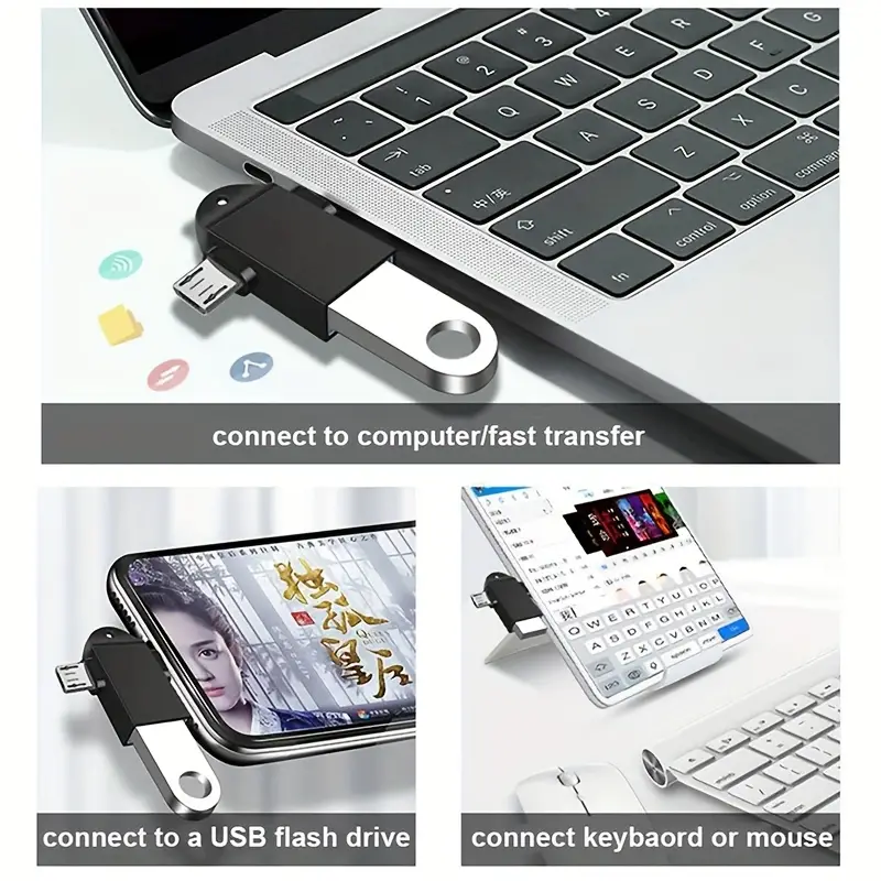 Type-c interface:connect mobile phone/tablet/notebook Micro usb interface:connect mobile phone/tablet/notebook USB interface: connecting the computer/Charger/socket Color: rose gold, gold, black, silver Weight: 8g |