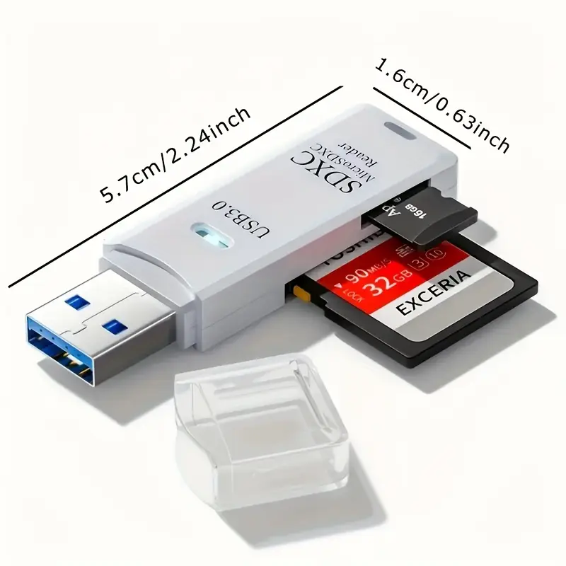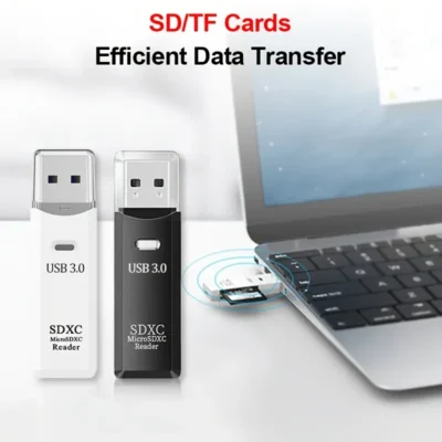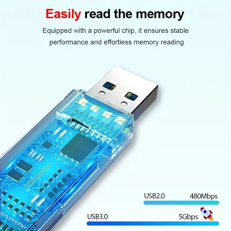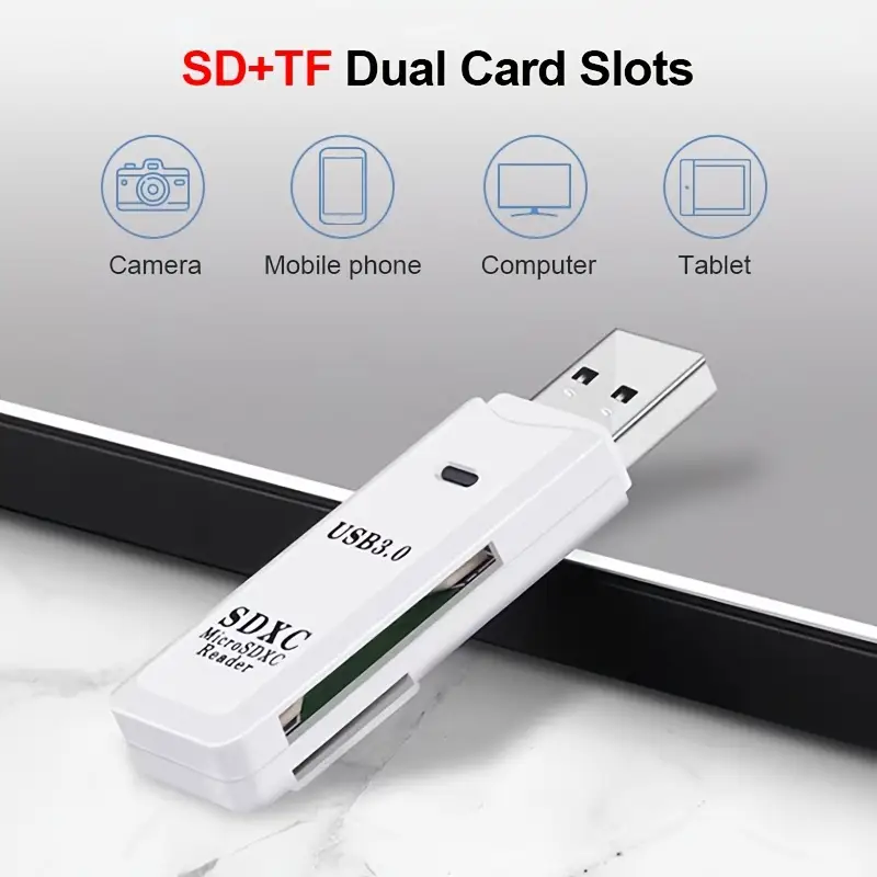 2-in-1 USB 3.0 Card Reader, High-speed 5Gbps Converter, with USB Adapter for PC, Compatible with Micro SD, SD, MMC, RS-MMC, UHS-I Cards, for Camera, Laptop