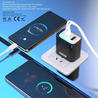 200W PD Fast Charger with EU Type-C Plug, Universal Reverse Charging Phone Adapter