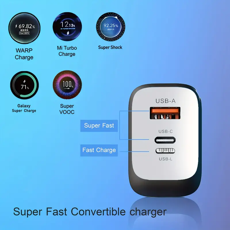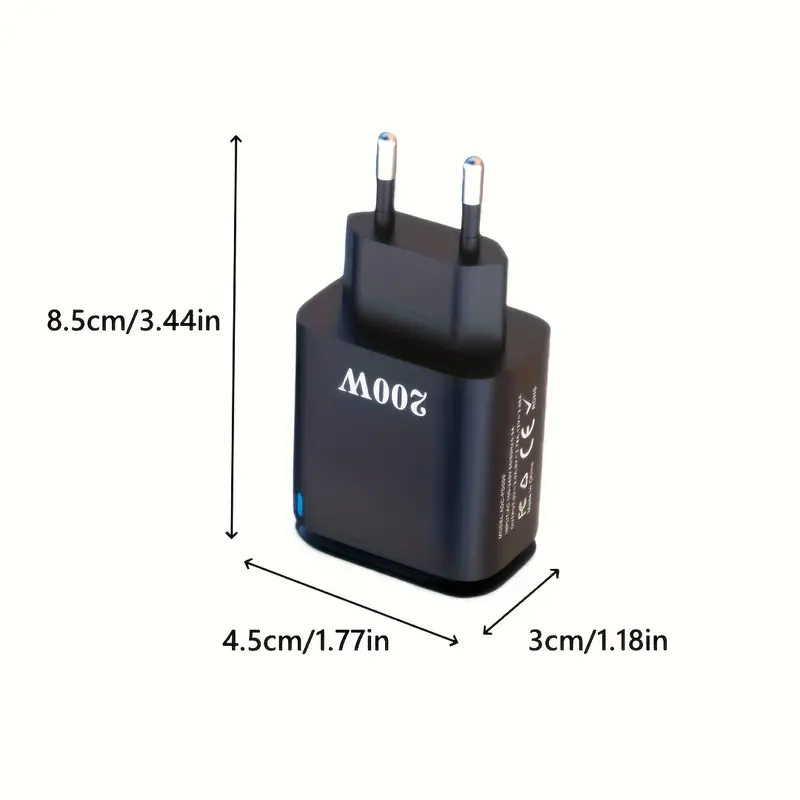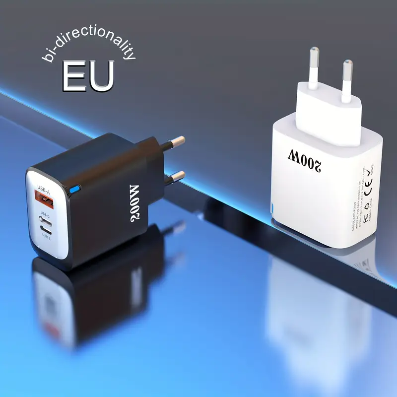 200W PD Fast Charger with EU Type-C Plug, Universal Reverse Charging Phone Adapter