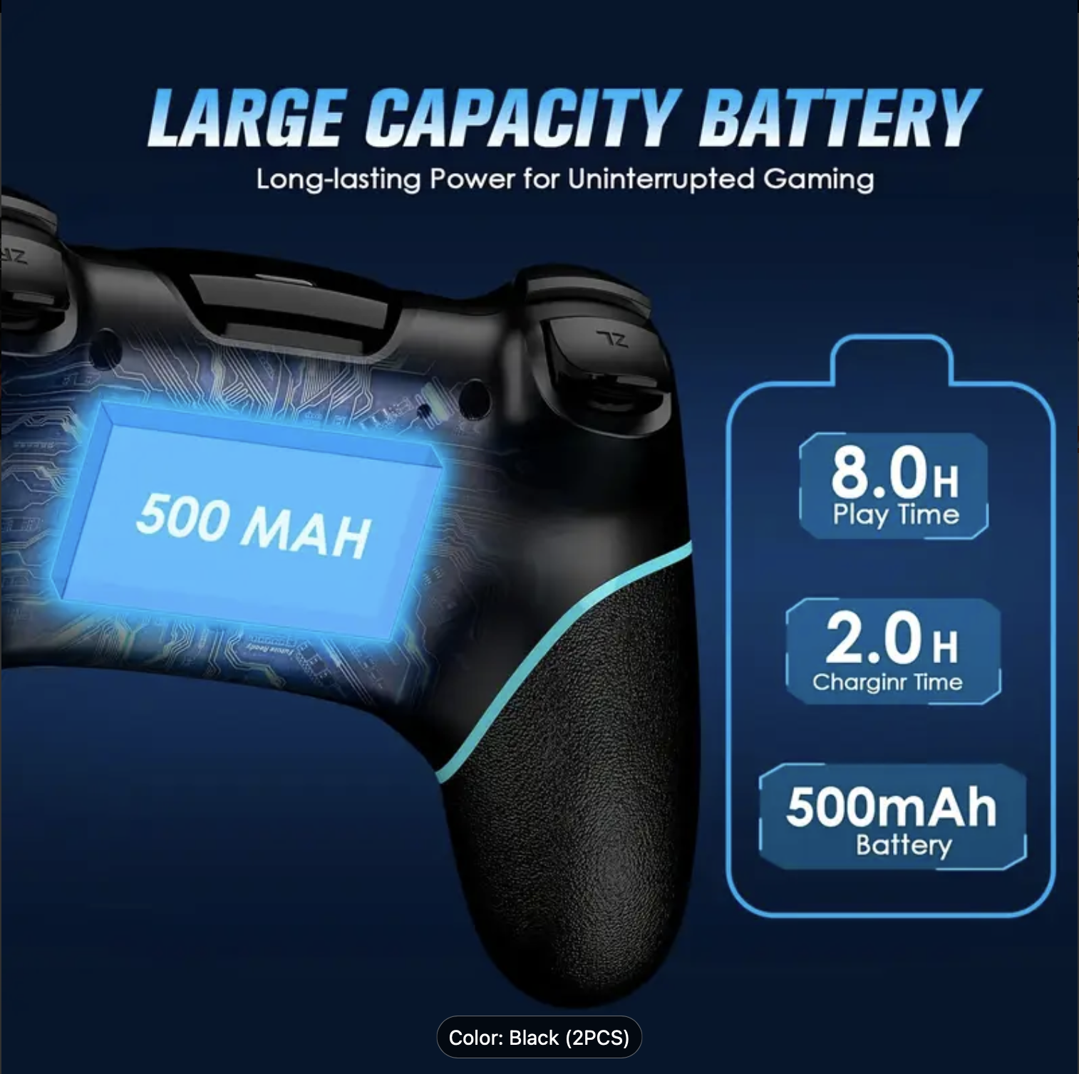 The high-performance battery allows you to enjoy game for 6 to 8 hours without interruption after fully charged.