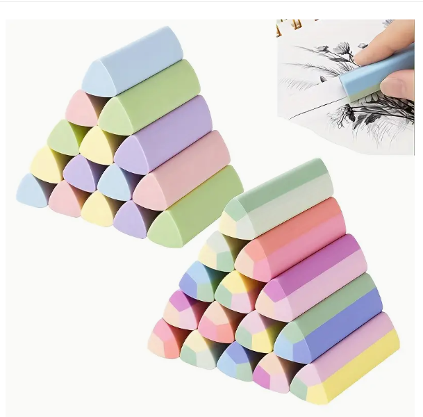 Multicolor Triangular Erasers, No-Trace Kneadable Erasers, Break-Resistant