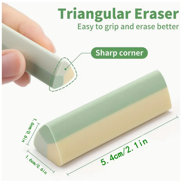 Multicolored design: These adorable erasers come in various colors, adding fun and creativity to your school or office supplies. Precise and comfortable: The triangular long rod design ensures a firm grip and easy use, making them perfect for detailed erasing tasks. Portable and lightweight: Compact and convenient, these erasers easily fit into your pencil case or bag, making them ideal for students and professionals on the go. Practical and versatile: These bulk erasers are great for students and professionals alike, essential for any workspace, providing clean and smudge-free corrections.