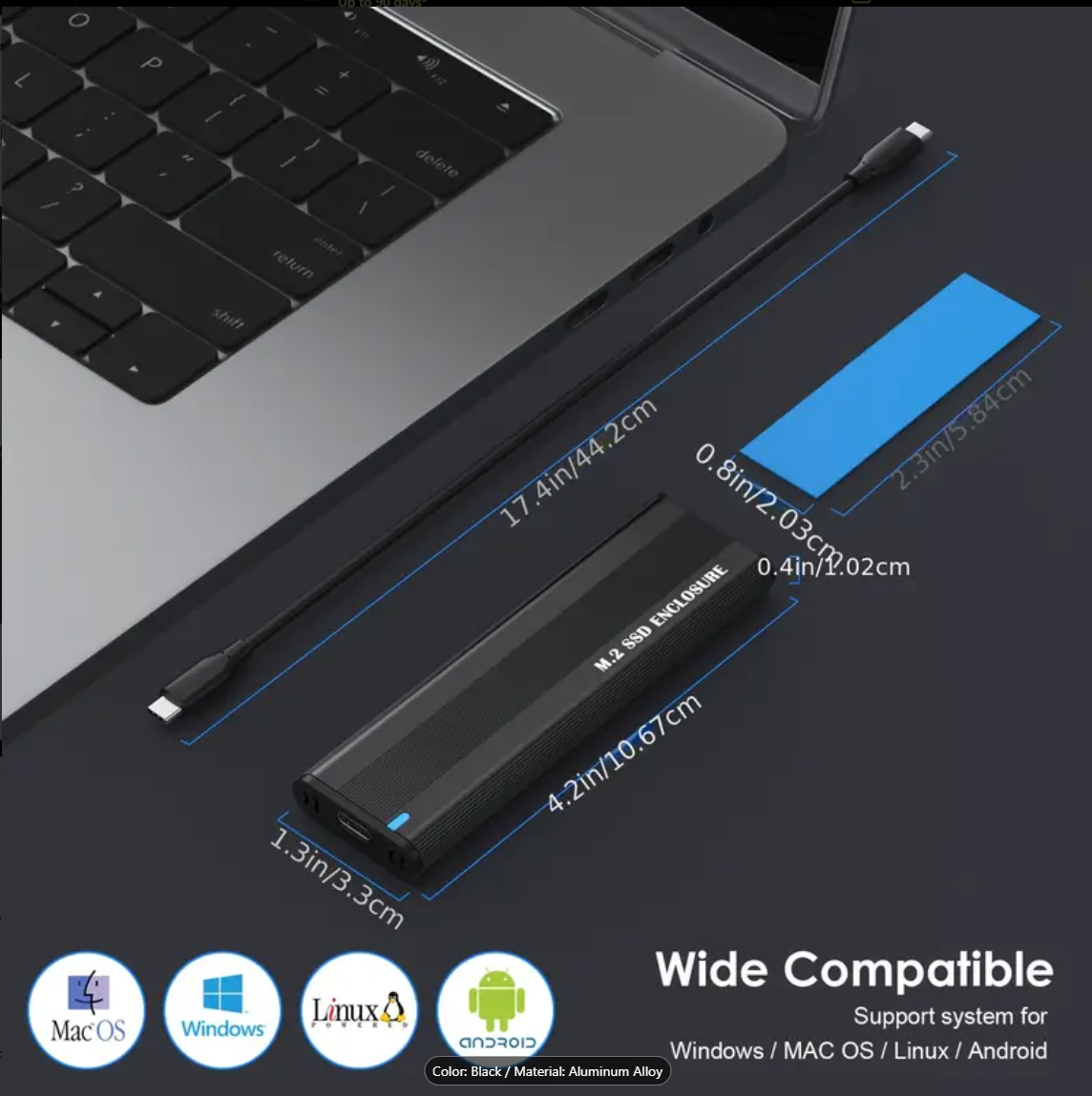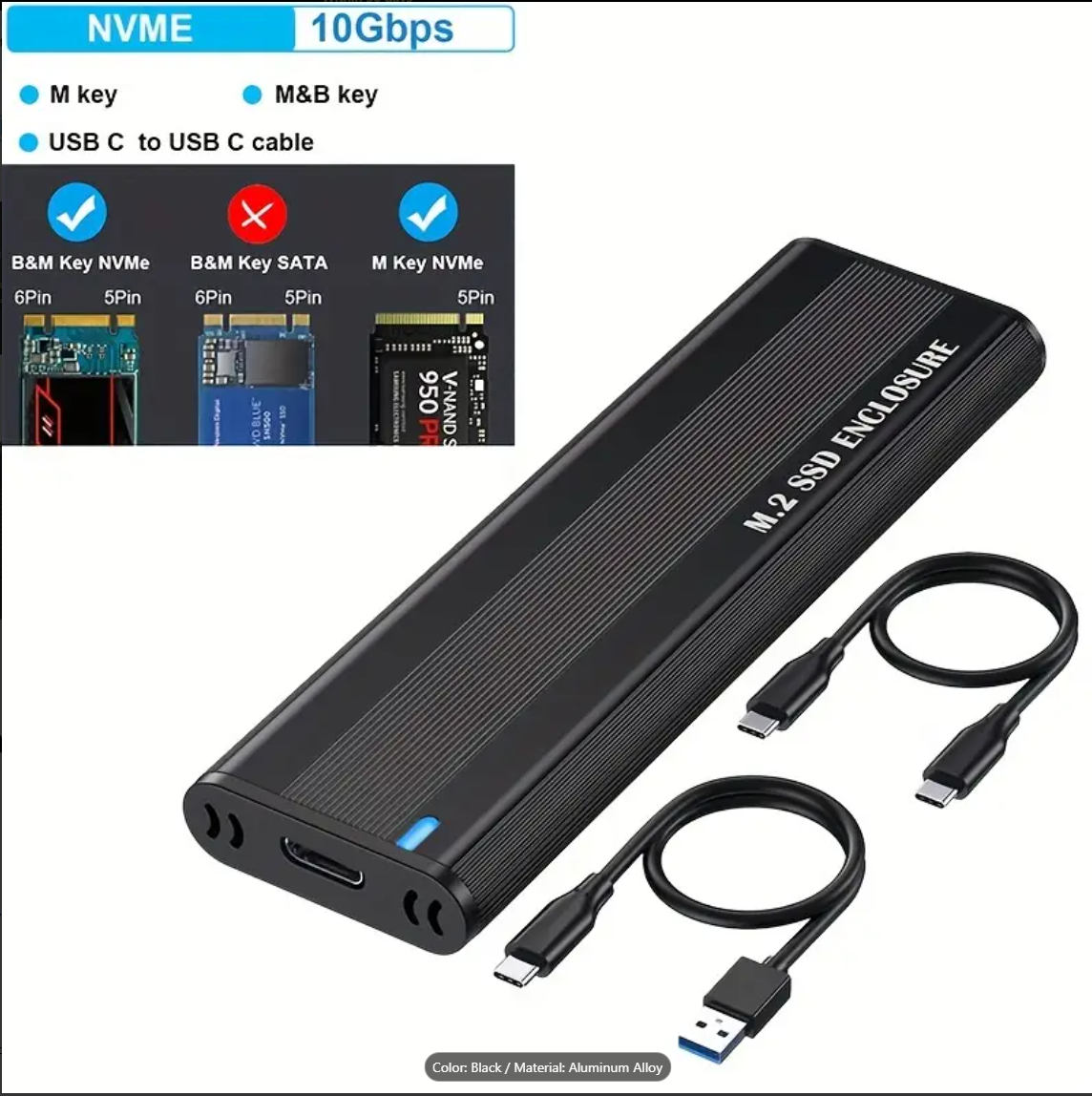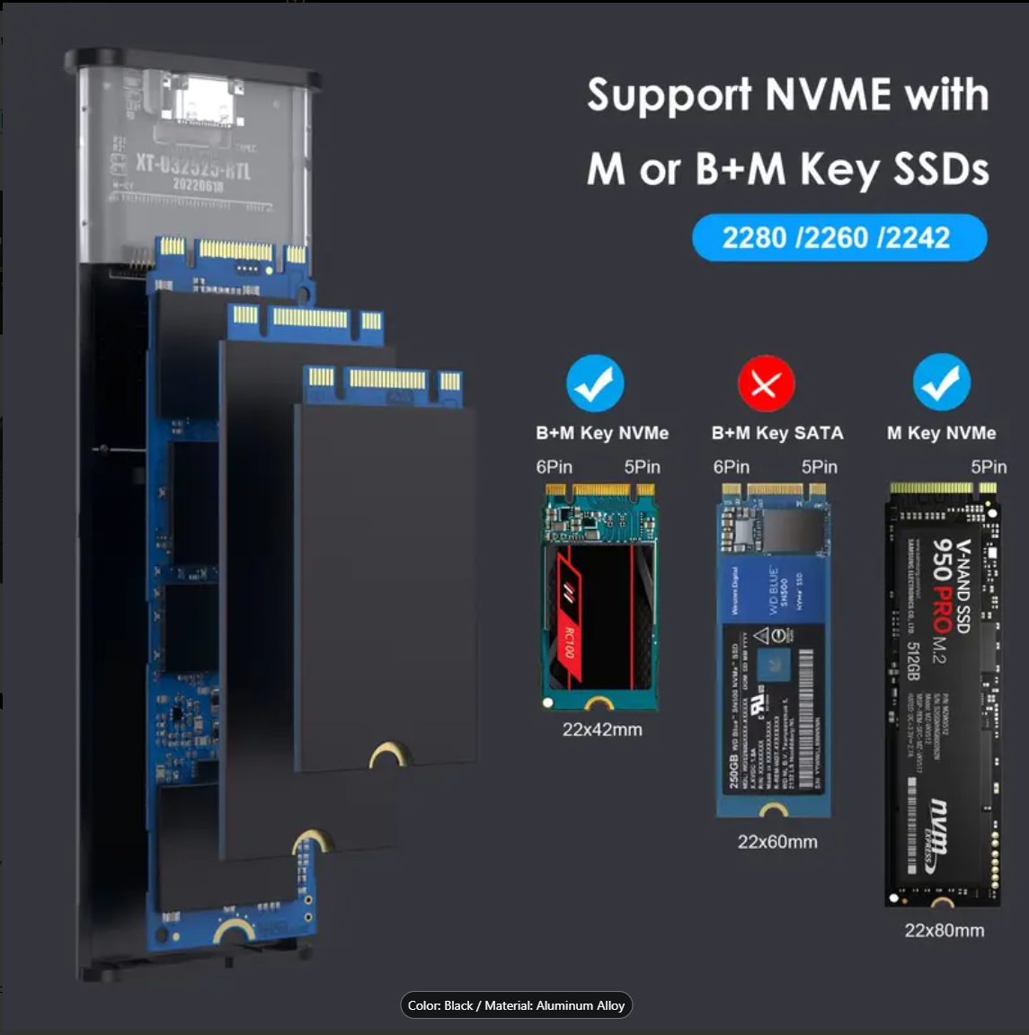 M.2 NVMe SSD Enclosure, USB 3.1 Gen 2 (10 Gbps) to NVMe PCI-E M.2 SSD Case Support UASP for NVMe SSD Size 2242/2260/2280