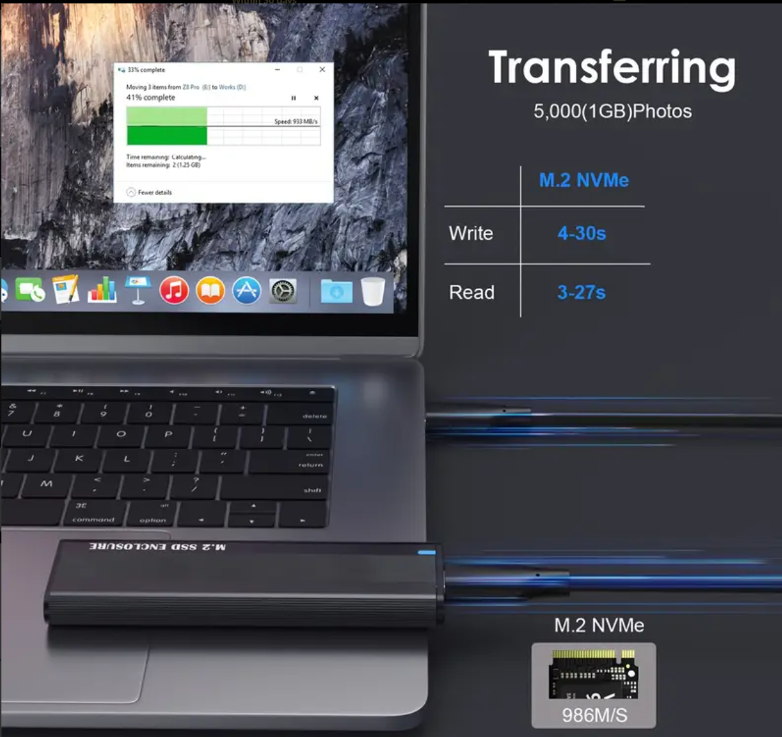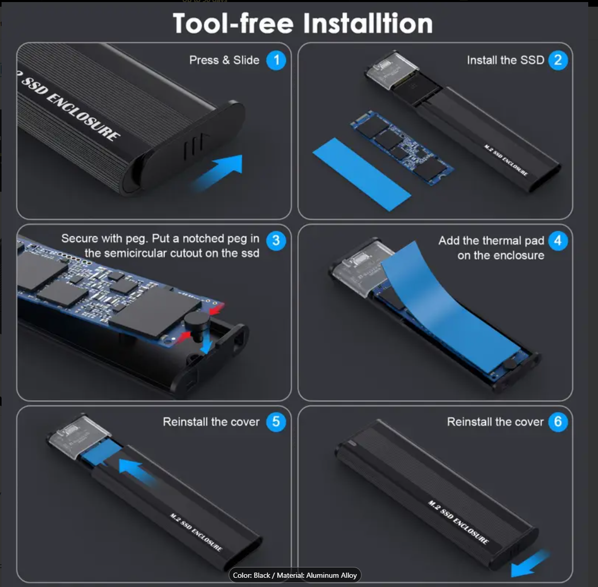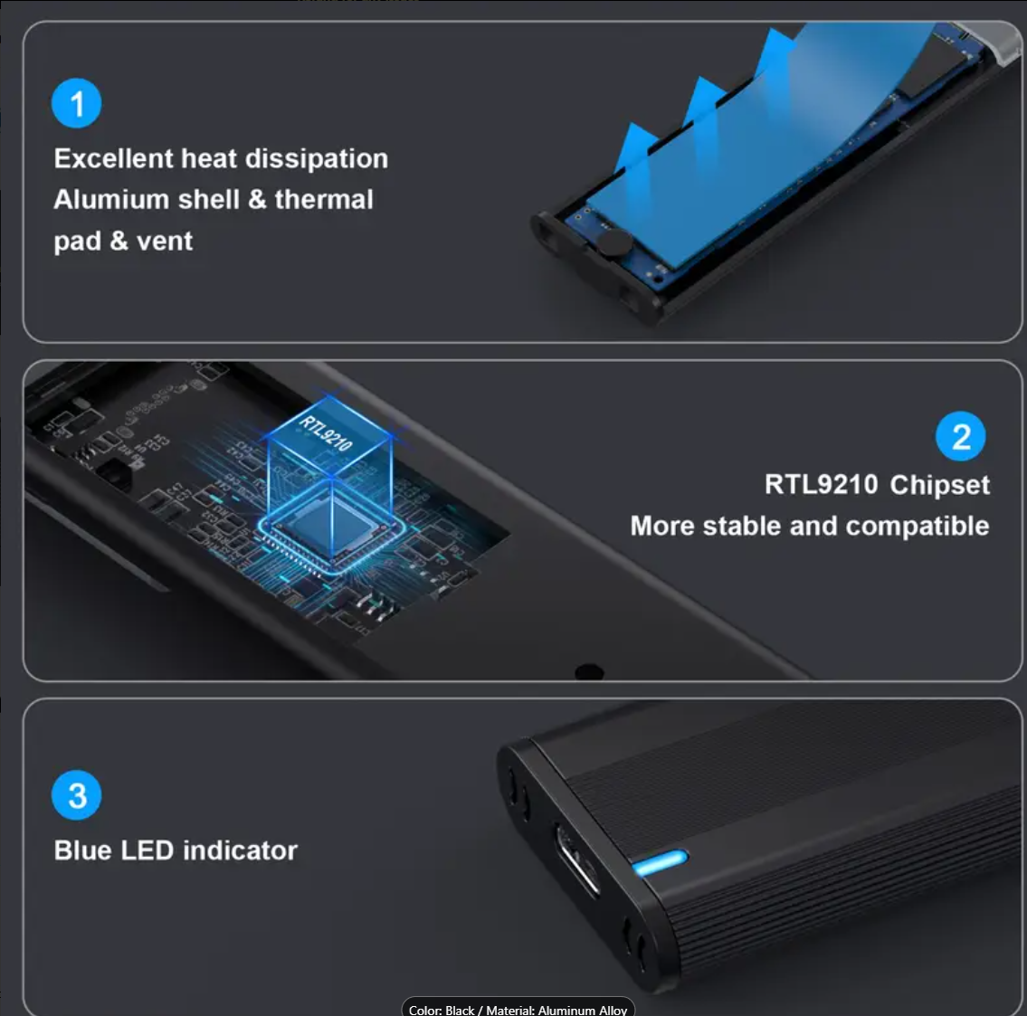 Note: 1. This M.2 NVMe enclosure does not support M.2 NGFF (SATA protocol) interface SSD or SSD with heatsink.