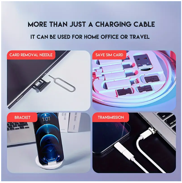 5-in-1 USB-C Charging Cable Set for iPhone 15/14/13 Pro Max with Card Slot & Phone Stand – High-Speed Data Transfer + SIM Card Tool