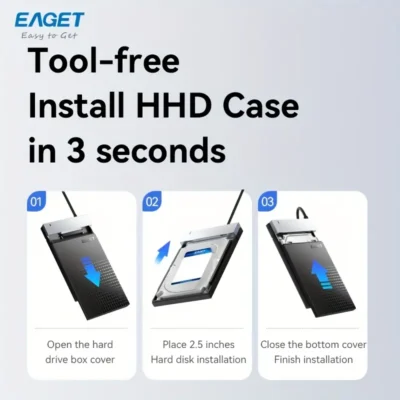 EAGET 2.5” External Hard Drive Enclosure USB 3.0 to SATA III Tool-Free External Hard Drive Case for 7mm/9.5mm 2.5 inch SSD HDD with UASP
