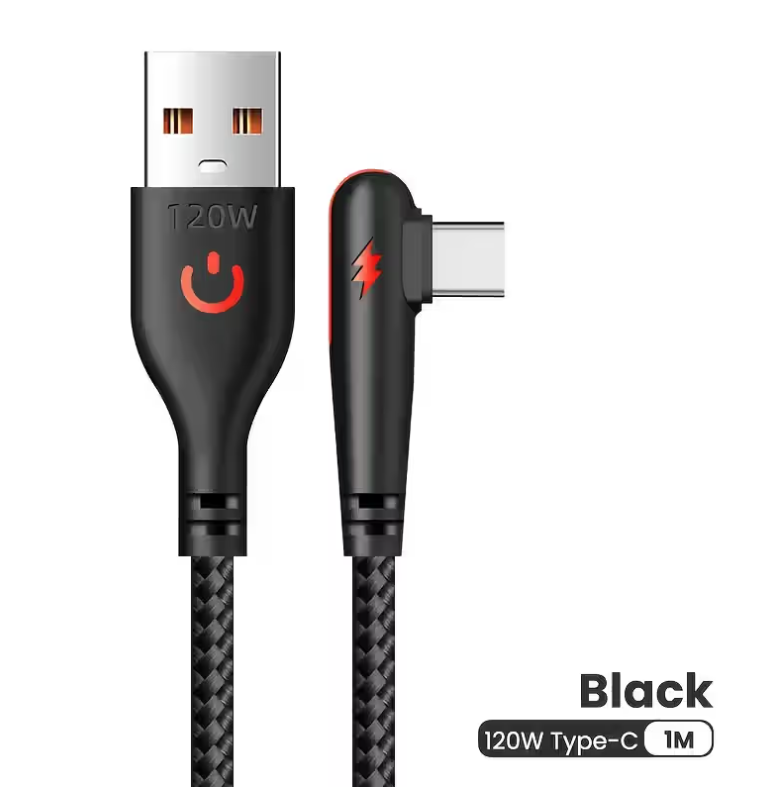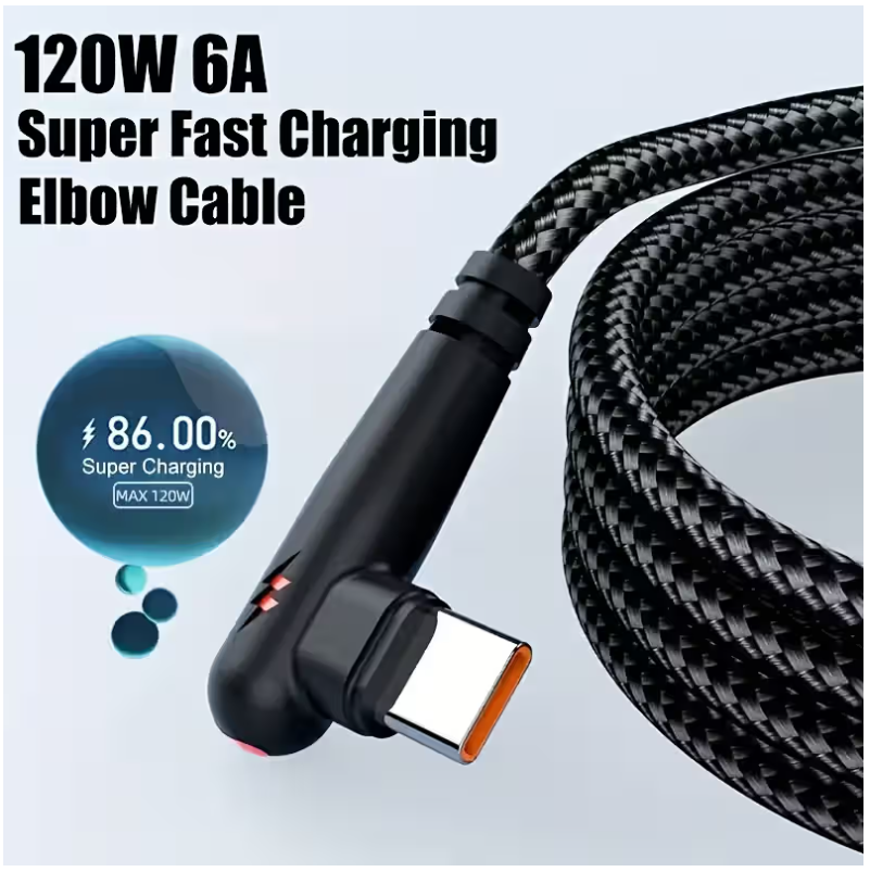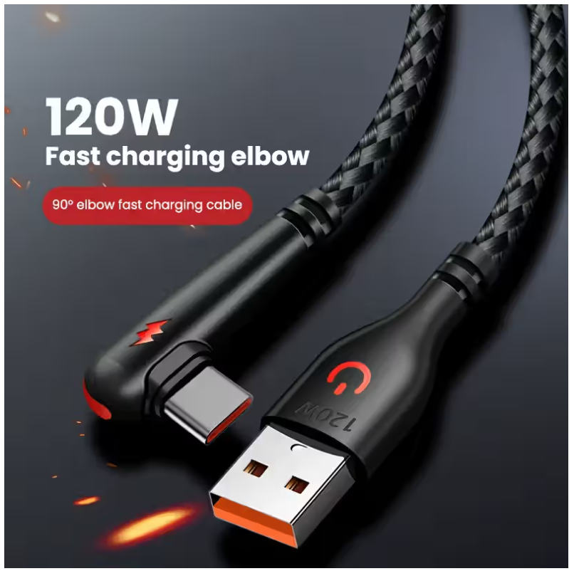Fast Charging Cable 90 Degree Elbow USB To Type C 120W 100cm