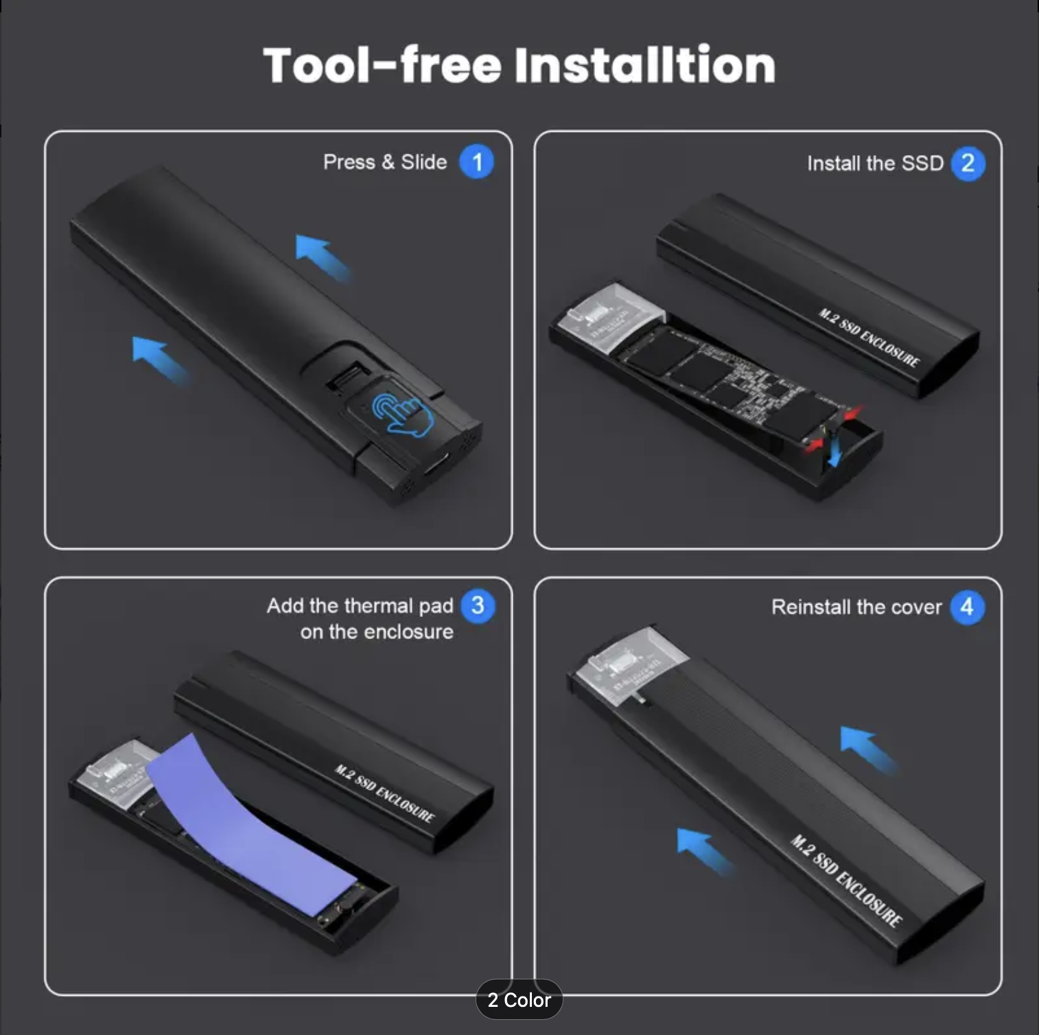 High-Speed M.2 NVMe SSD Enclosure – USB 3.1 Gen 2 (10Gbps) to PCI-E Adapter, UASP Support, Aluminum Alloy Case for Sizes 2230/2242/2260/2280