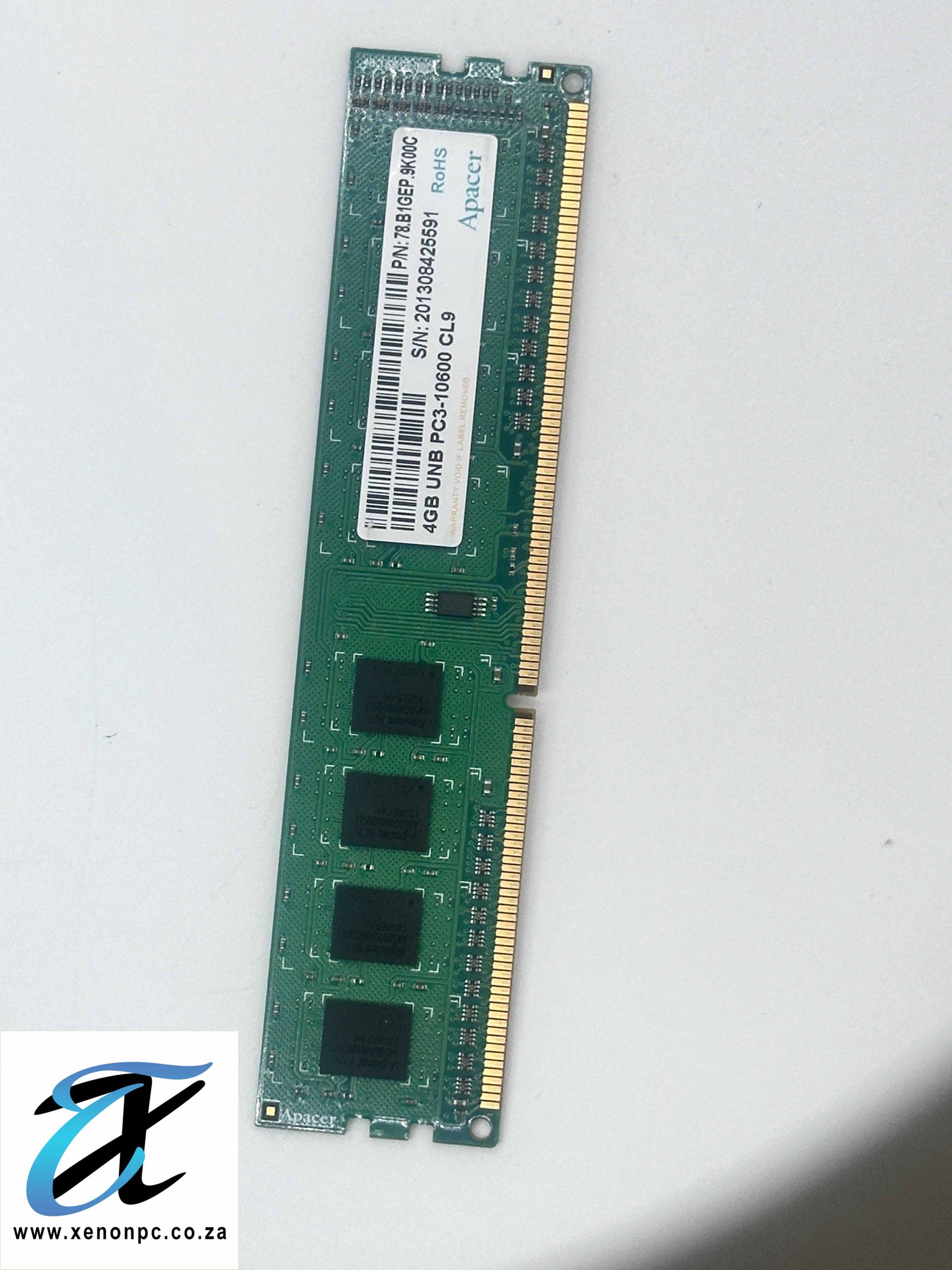 Apacer 4GB DDR3 1333MHz PC3-10600 CL9 240-Pin Desktop RAM (201308425591)