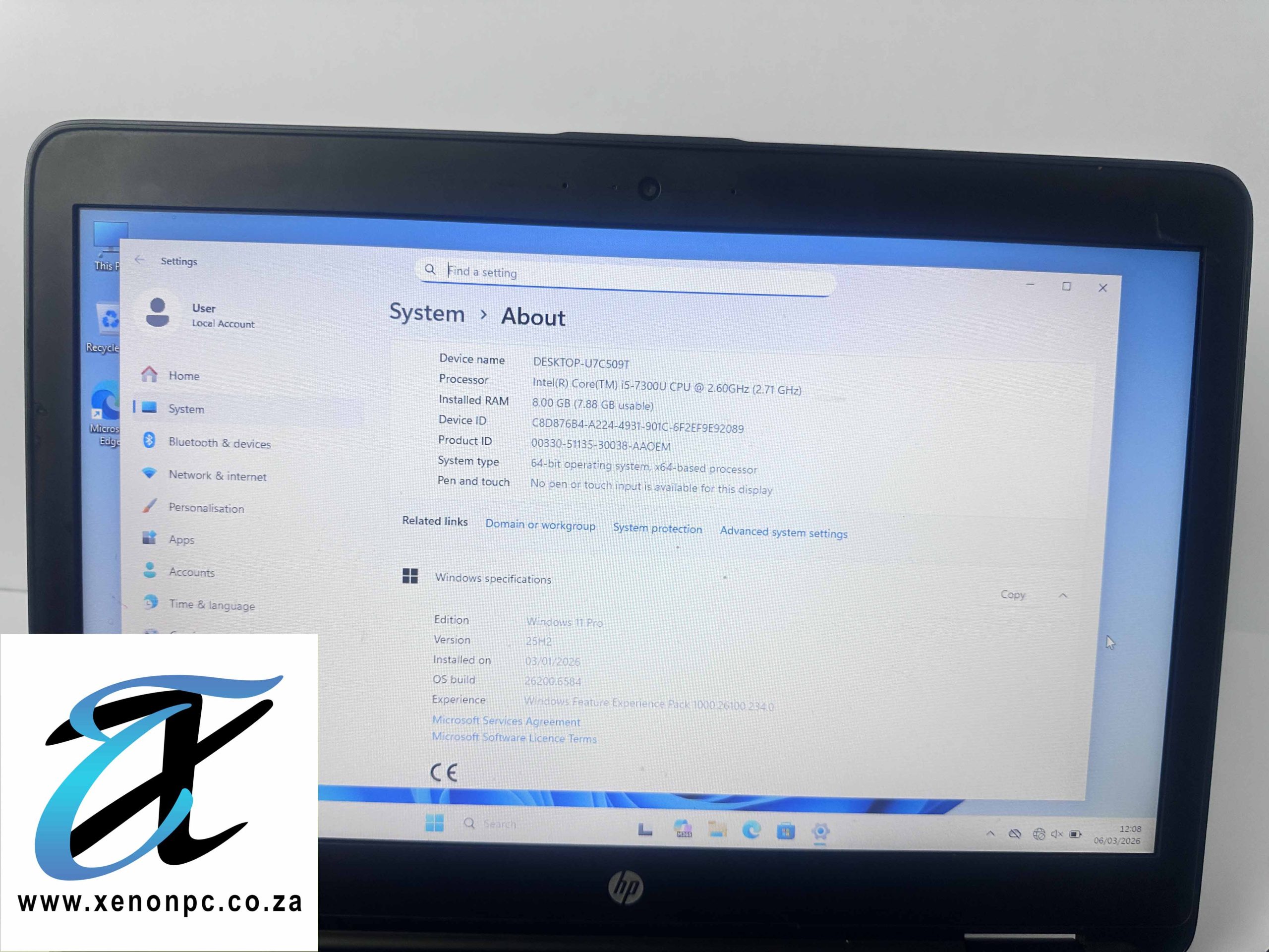 - Intel Core i5 – 7300U @ 2.60GHz