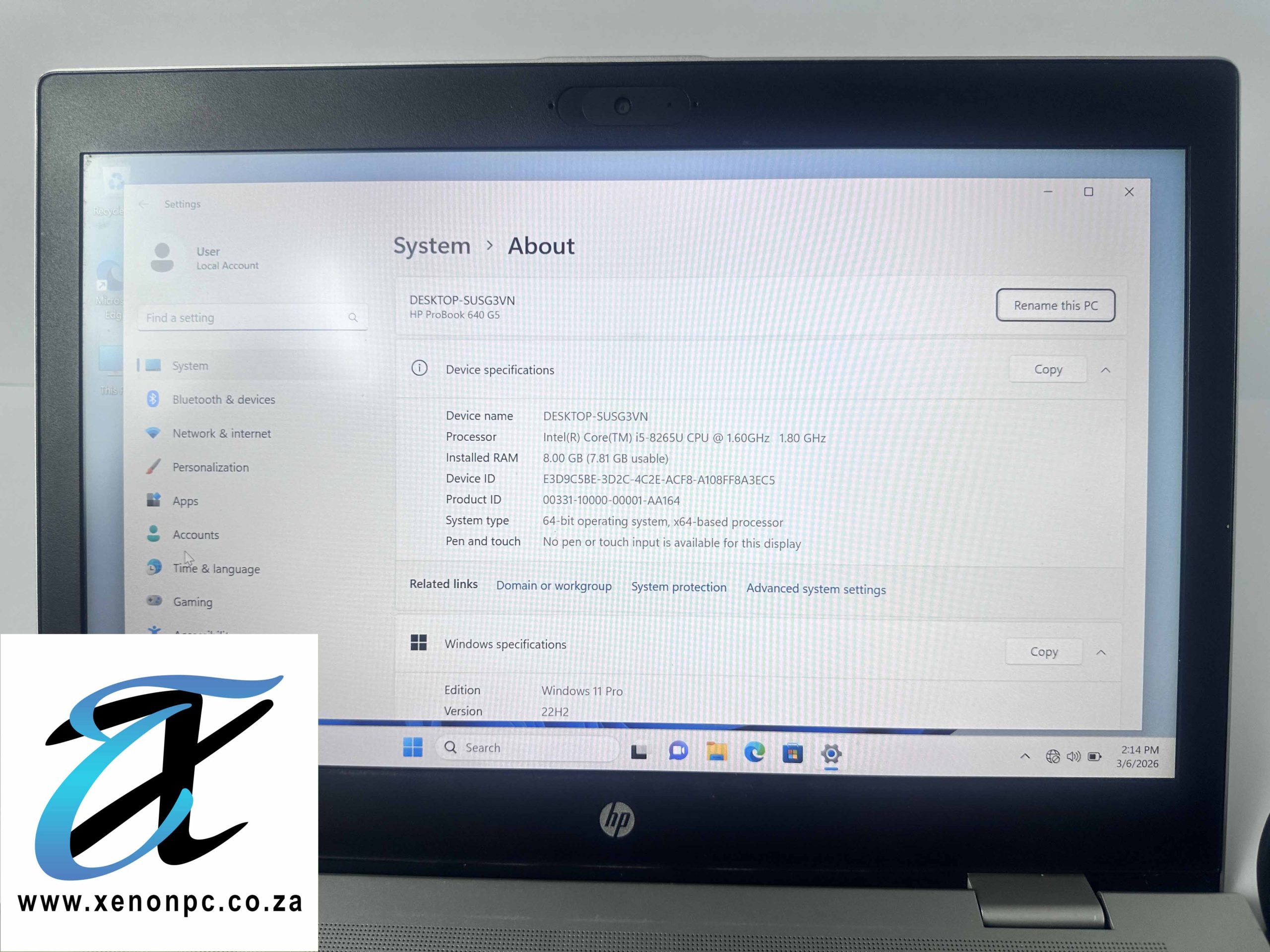 HP ProBook 640 G5 14″ Notebook – 1920 x 1080 – Core i5-8265U – 8 GB RAM Optane Memory – 256 GB SSD – Windows 11 Pro 64-bit – Intel UHD Graphics 620 – in-Plane Switching (IPS) Technology