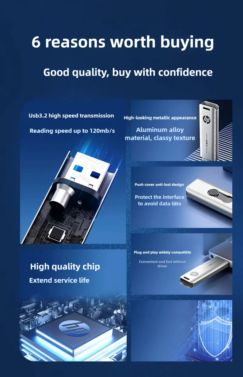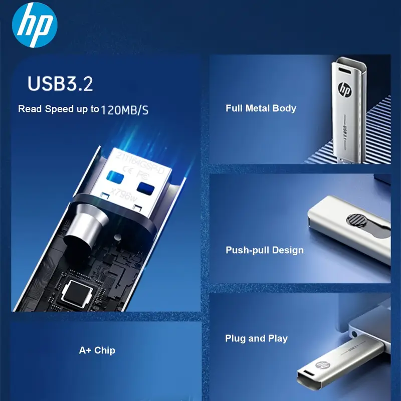 hp USB 3.2 Metal USB Flash Drive 64GB Pen Drive Creative Personality Car Music Gift High-Speed USB 3.2 Pen Drive