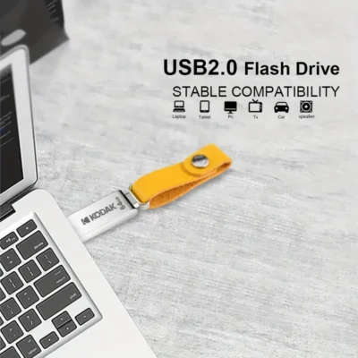 Kodak USB 2.0 Flash Drive 64GB with Leather Button – High-Speed Data Transfer