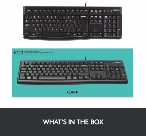 Logitech Keyboard K120. A better typing experience that’s built to last. You ll enjoy a comfortable and quiet typing experience thanks to the low-profile keys that barely make a sound and standard layout with full-size F-keys and number pad. With its thin profile, spill-resistant design, durable keys that can withstand up to 10 million keystrokes and sturdy, adjustable tilt legs, this sleek keyboard not only looks and feels good-it s built to last. Setup is simple too. You just plug it into a USB port and start using it right out of the box. Bold, bright white characters make the keys easier to read. And it all comes with the high quality and reliability that s made Logitech the global leader for keyboards and mice.