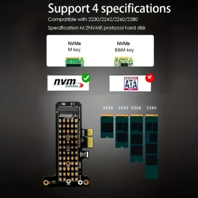 M.2 NVMe PCIe to PCIe x1 Adapter Card – PCIe 3.0/4.0 SSD Converter, M.2 Key M-Key (2230/2240/2260/2280) NVMe/SATA-like M.2 Drives Compatible with Desktop/Laptop, Plug & Play Installation