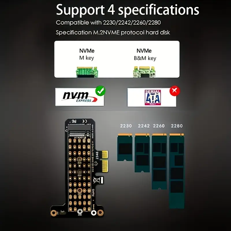 - Feature: Small size, easy install, multiple PCIE interface on the motherboard can test multiple SSD at the same time.
