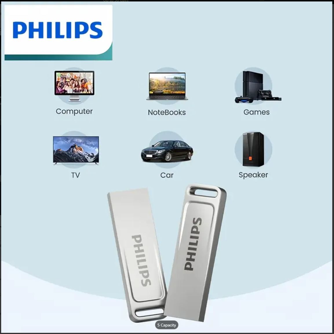 PHILIPS 8GB USB Flash Drive, Rugged Metal Casing, USB2.0 Storage Expansion for Photos, Videos, Music, Files