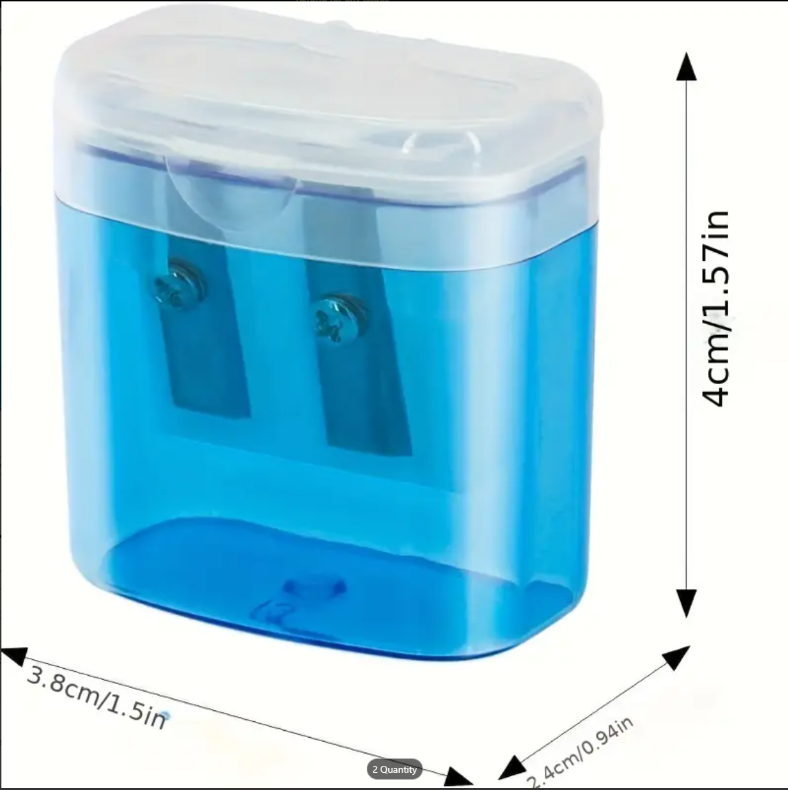 1PC dual-slot manual pencil sharpener with lid – compact plastic, no batteries required – ideal for school supplies & party favors