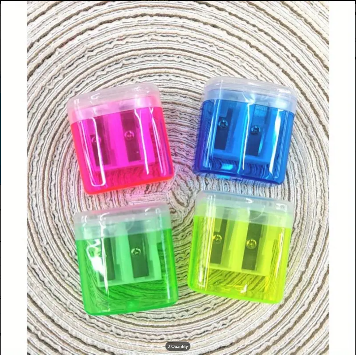 Plastic Dual-Hole Pencil Sharpener with Lid, Simple Pencil Shaver, Christmas Gift Party Favor