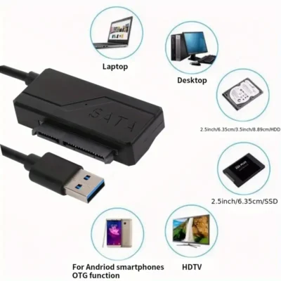 SATA to USB 3.0 External Hard Drive Cable for 6.35cm & 8.89cm SATA HDD/SSD – High-Speed Data Transfer