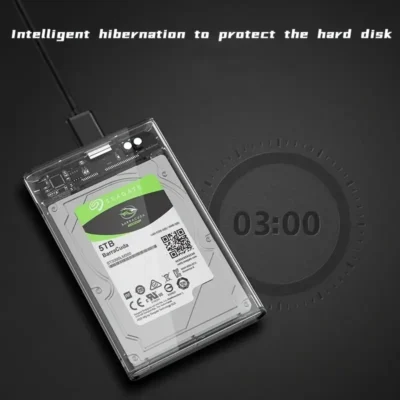 Ultra high speed 6.35cm SATA to USB 3.0 casing – transparent, tool free installation, suitable for laptops and desktops, supports mechanical and solid-state drives, portable external box, Computer Accessory, Data Transfer, Sleek Enclosure, Modern Storage, Durable Shell, Sturdy Construction, Storage Adapter, Office Workers, Tech Enthusiasts