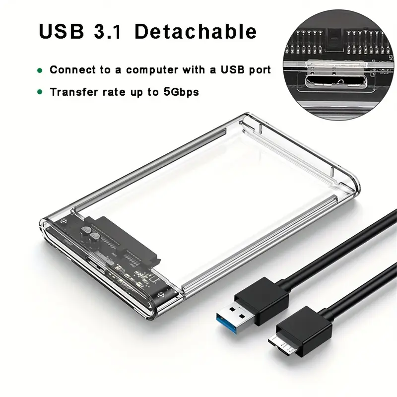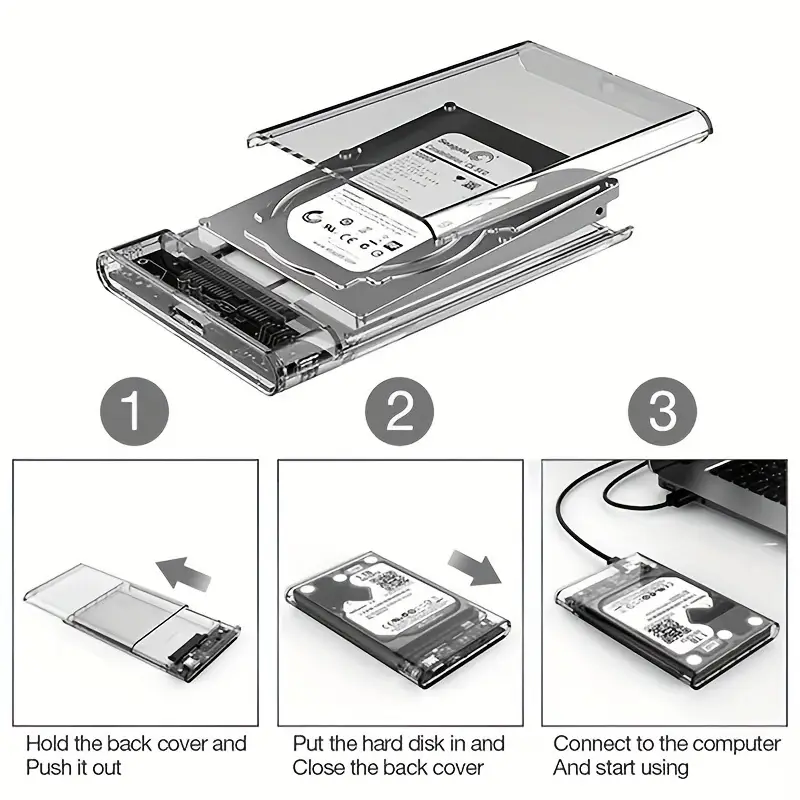 Ultra high speed 6.35cm SATA to USB 3.0 casing – transparent, tool free installation, suitable for laptops and desktops, supports mechanical and solid-state drives, portable external box, Computer Accessory, Data Transfer, Sleek Enclosure, Modern Storage, Durable Shell, Sturdy Construction, Storage Adapter, Office Workers, Tech Enthusiasts