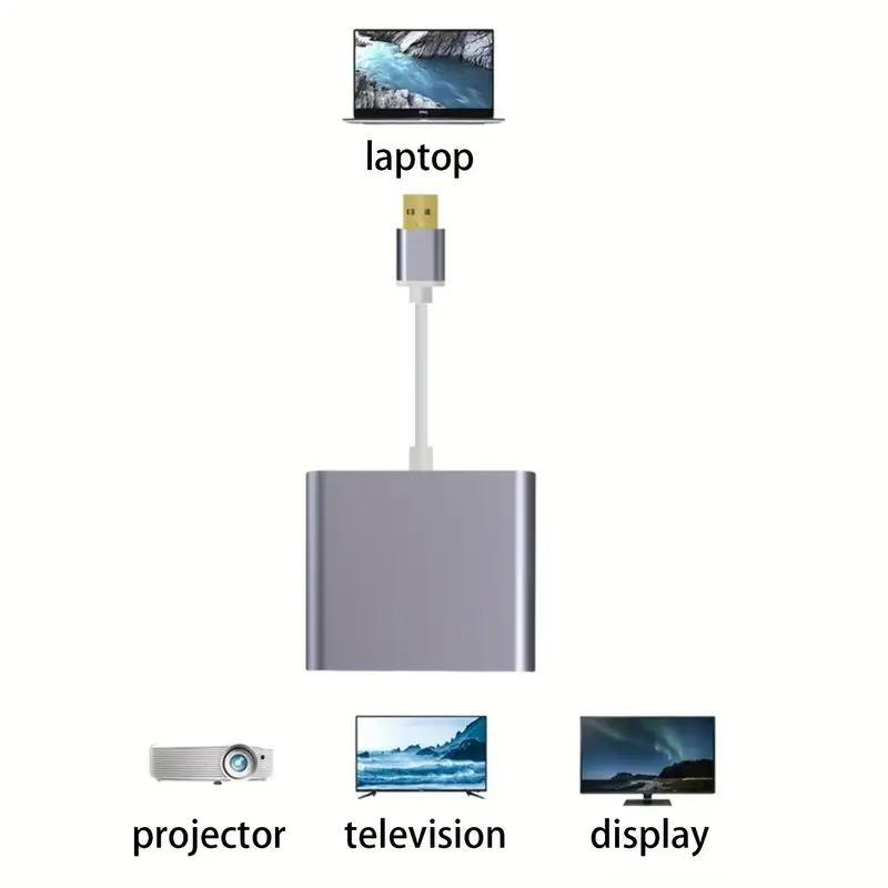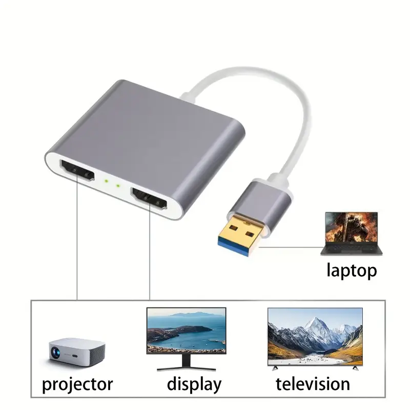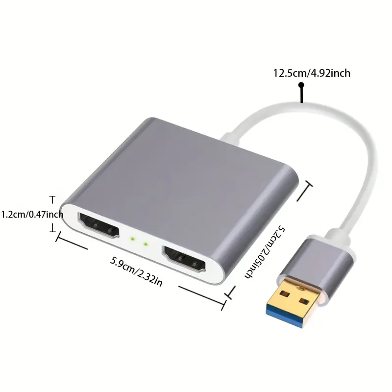 USB 3.0 to Dual HDTV Video Converter with 1080P@60Hz Support, Dual Screen Display for Computers, Laptops, and Projectors – Compact & Portable 12.5cm Cable, USB-Powered, 5V Operating Voltage, USB Hub for Multiple Devices, Laptop Accessory, Modern Accessory, Highspeed Connectivity