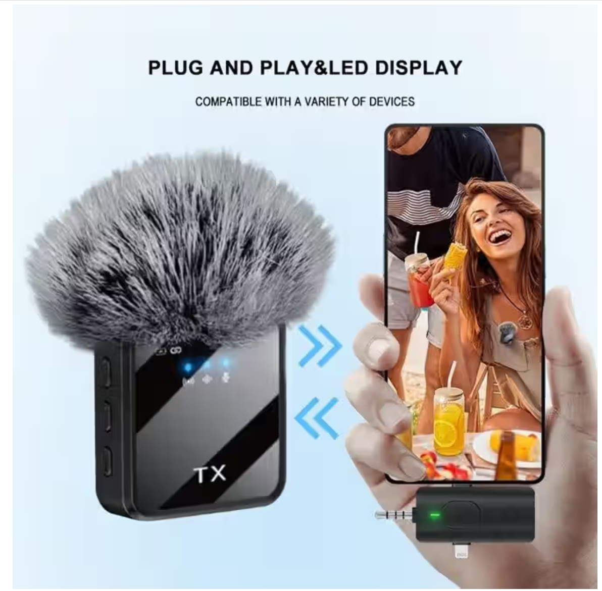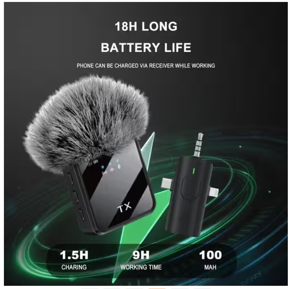 Wireless Lavalier Microphone Dual TX Clip-On Mic with Receiver – Noise Reduction, 2.4GHz, for iPhone, Android & Camera For Vlogging / TikTok / YouTube /Live Record