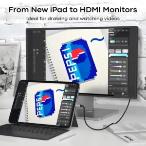 USB-C to HDMI cable directly connects an HDMI monitor to your tablet, MacBook, Chromebook or smartphone’s USB-C or Thunderbolt 3 port.